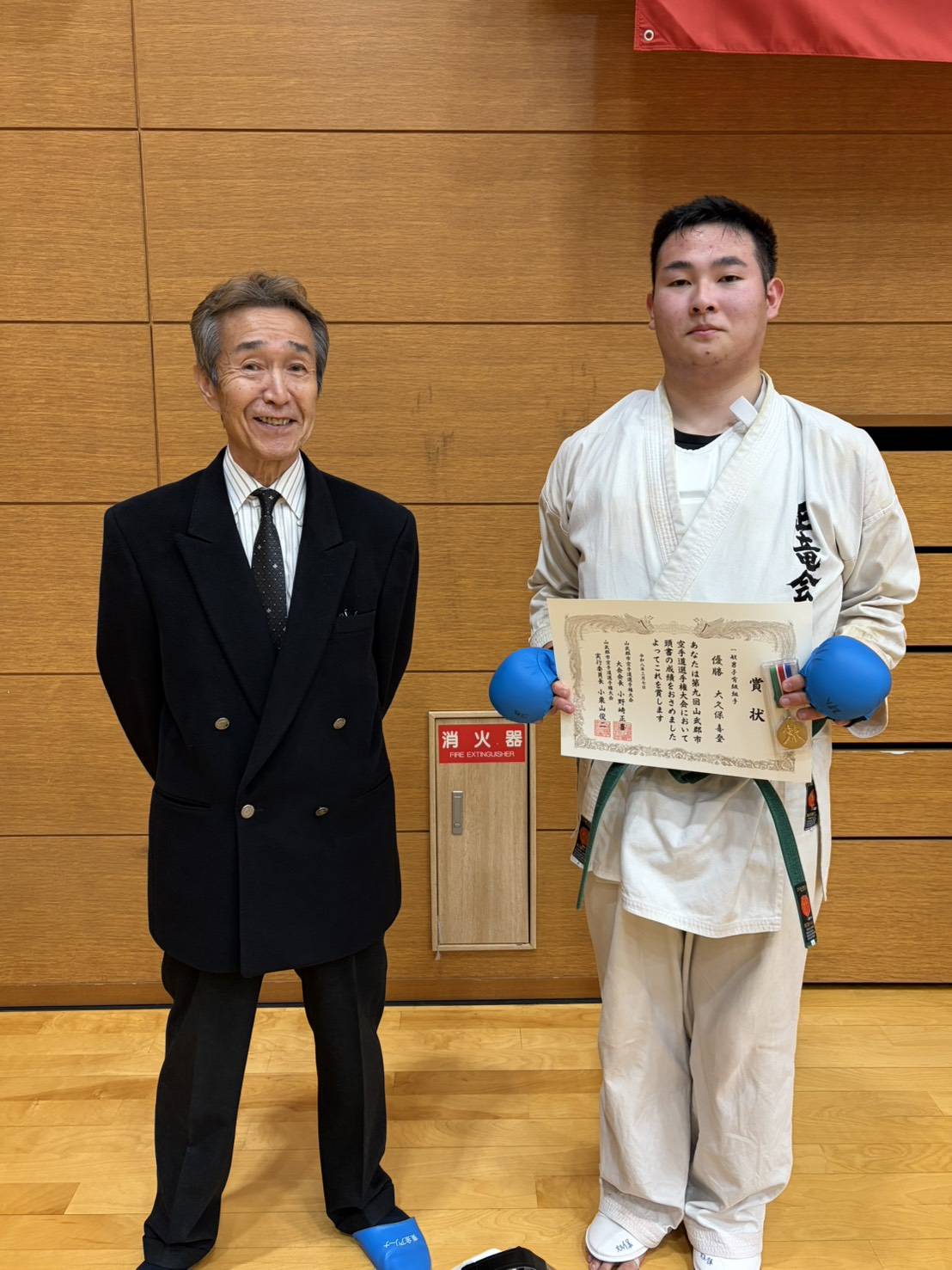 第9回山武郡市空手道選手権大会で高校生ながら、一般の部に出場し、見事優勝の栄冠に輝きました。
